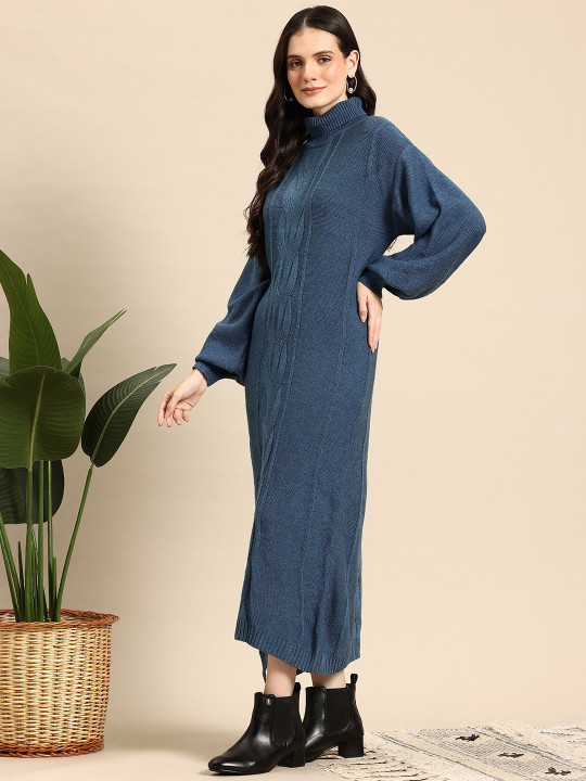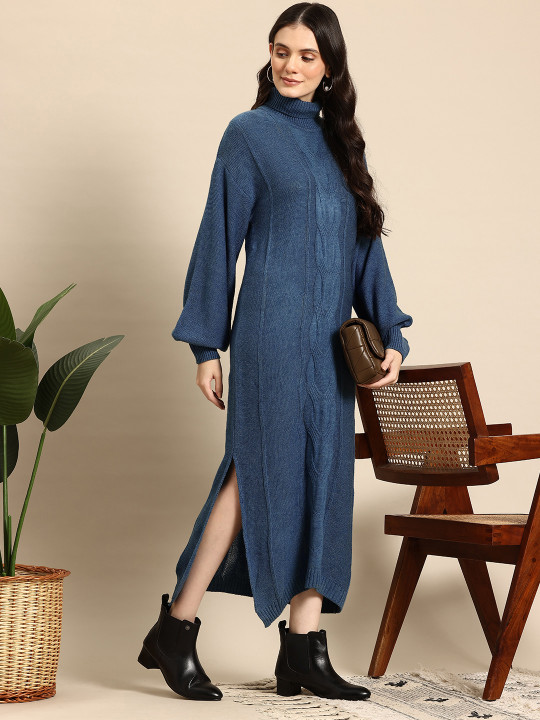 - Blue cable knit jumper dress