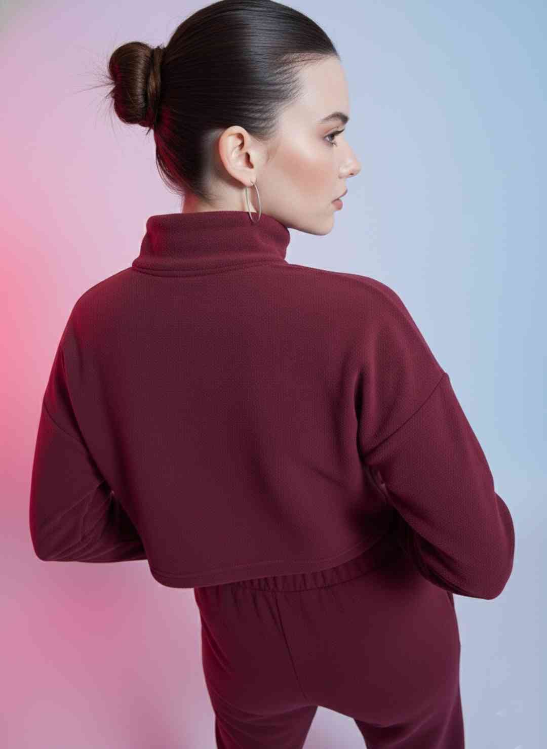 Green Mock Collar Crop Sweatshirt